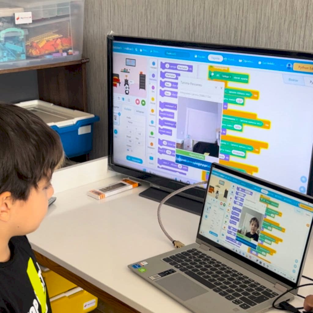 Blok tabanlı programlama ile interaktif hikaye, animasyon ve oyun geliştirilir.