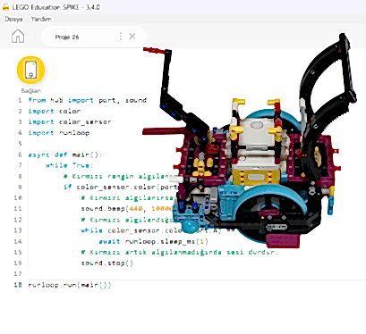 Lego Education Spike Prime seti kullanarak Python ile robotik kodlama uygulamaları içerir.